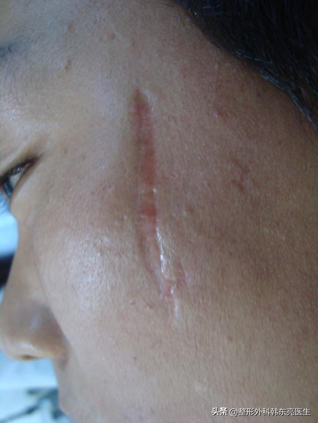 给大家做个总结:对于比较宽,比较长,比较深的凹陷性疤痕,采用手术切除缝合的方式,将疤痕切除后,把边缘皮肤缝合在一起,重新进行精细美容缝合,解决凹陷的形态!