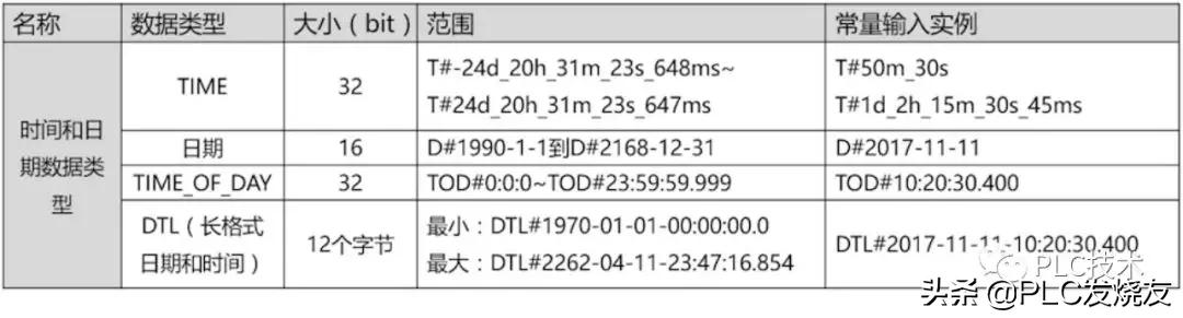 基本数据类型:是PLC编程中常用的数据类型,通常把占用存储空间64个二进制位以下的数据类型称为基本的数据类型。包括位、位系列、整数、浮点数、日期&时间、字符