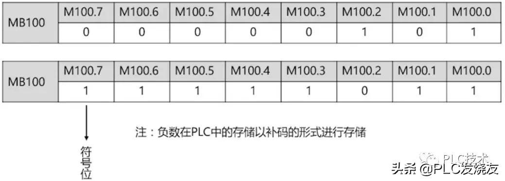 如:数值5和-5分别存在MB100中,MB100的数据类型为SINT