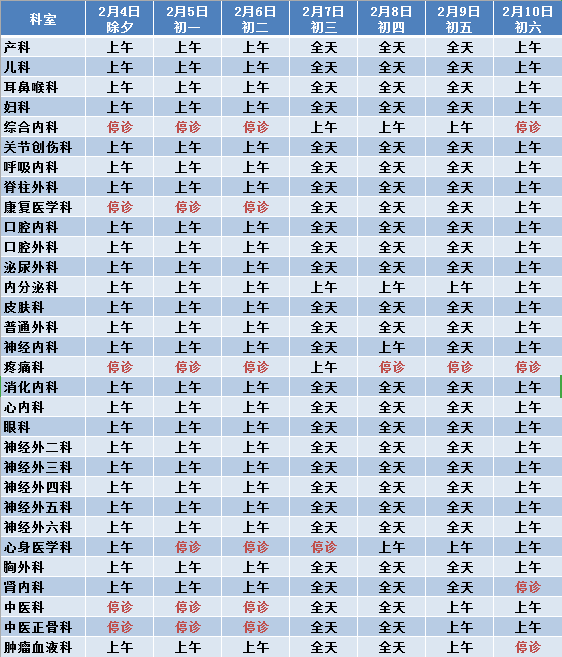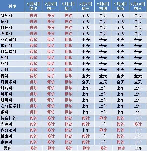 2月7日-2月10日:上午半日门诊、全天急诊;