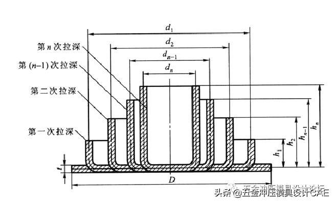 拉深次数确定后,再根据计算直径差 应等于 的原则对