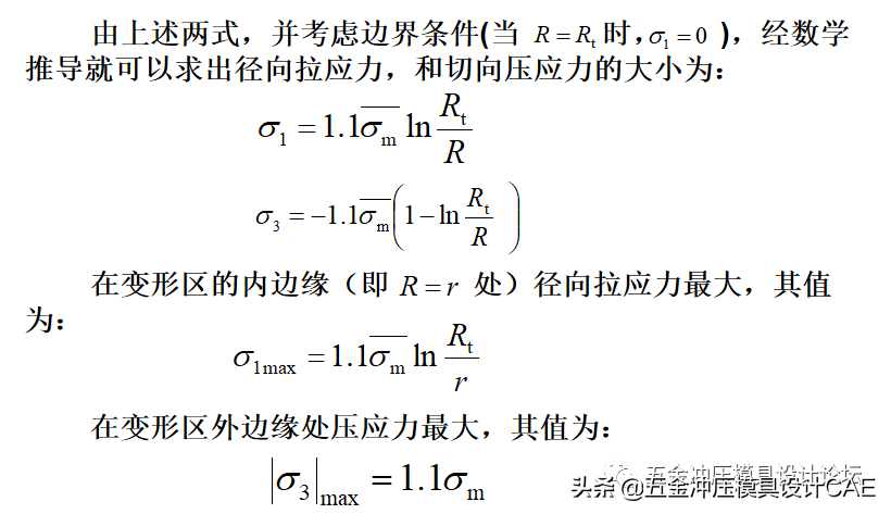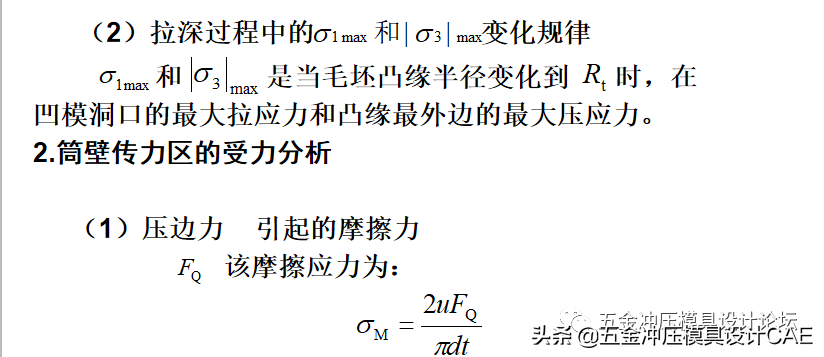 拉深初期凸模圆角处的弯曲应力也按上式计算,即: