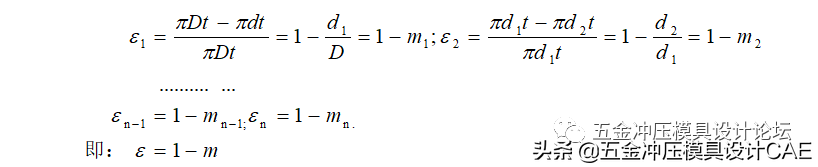 根据表中的拉深系数值进行计算,即第n次拉深后的直径为: