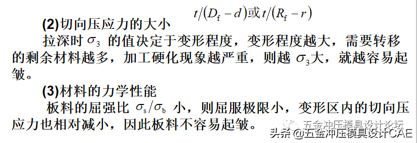 如果不能满足上述式子的要求,就要起皱。在这种情况下,必须采取措施防止起皱发生。简单的方法(也是实际生产中常用的方法)是采用压边圈 。