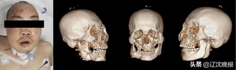 “面部粉碎性骨折,直观地说面部骨骼成粉末状了,整个面部的骨头都碎了,眼睛、嘴肿得严重,鼻子塌陷,里面的骨头都断裂了,面骨一共14块,能折的全折了,每块骨头都碎成3块以上。”佟爽介绍:先要保住患者的命,经过近一周时间,在急诊、重症医学科、创伤中心等多科室联合协同的精心救治下,患者的伤情基本得到了控制,生命体征趋于平稳。