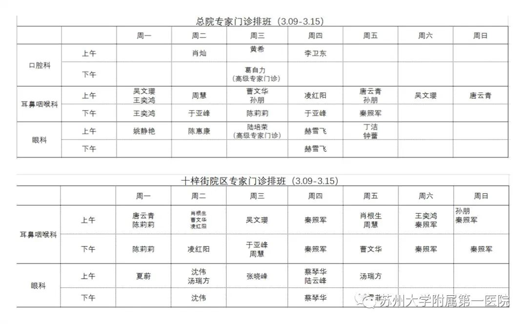 3月9日开始,苏大附一院有序恢复口腔科、耳鼻咽喉科、眼科等限制类门诊服务(口腔科暂时只开设总院的门诊,十梓街院区仍是暂停状态,恢复时间另行通知)所有门诊(包括普通门诊、专家/专病门诊)实行预约制,不接受当日现场挂号。未经预约,当日不能就诊。