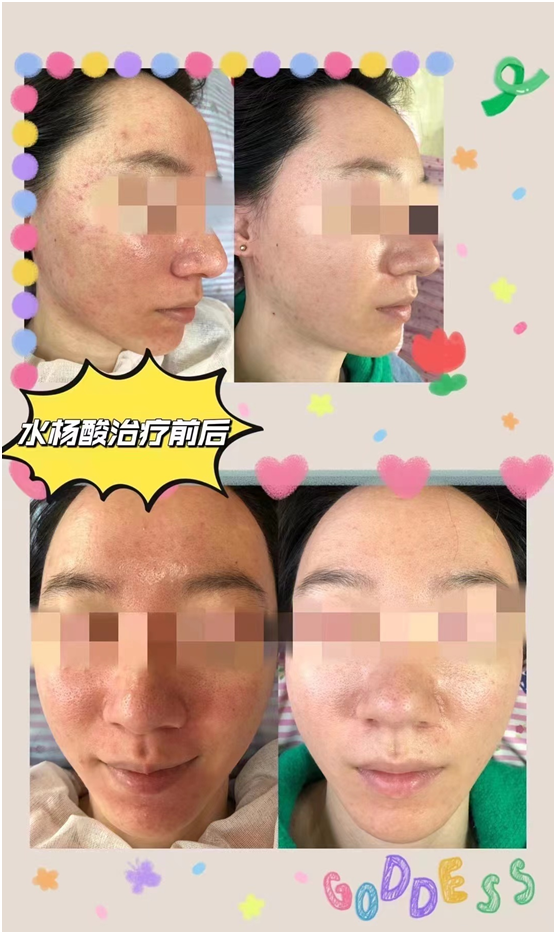 5、水杨酸:祛痘、美白、提亮、嫩肤、改良油性皮肤、鸡皮肤(原价:面部600元、背部2000元、上肢2000元、下肢2800元,新年价:每个部位买三送一)