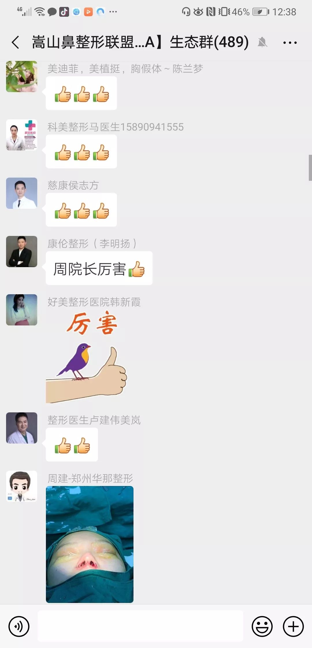 手术照片发布到嵩山大群后,群里也一片刷屏叫好。