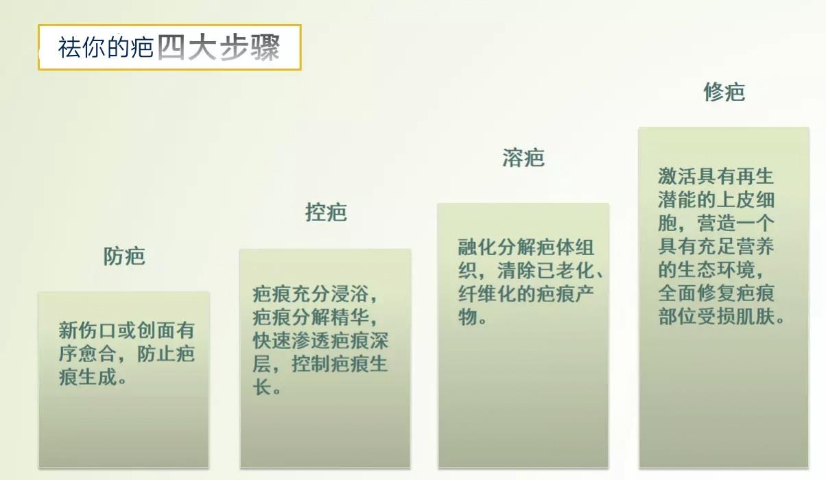 祛你得疤,无需手术、不用激光、不遭罪,轻轻一抹,从此和疤痕say goodbye~ 不管是陈年旧疤,还是烫伤疤,手术疤,针对各种疤痕类型都能有消除