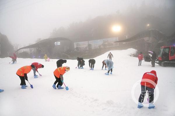 梦幻奥陶纪主题乐园的恐龙冰雪世界门口,贴着“悬赏”启事。上游新闻记者 甘侠义 摄 如果不慎将一枚小小的戒指遗失在了一片上万平方米的雪场上,你打算怎么寻回?2月底,从上海来重庆万盛奥陶纪景区旅游的华佳杰夫妇在雪场游玩时,就不小心将一枚定制的结婚钻戒遗失在了雪场上,经过自己和景区工作人员寻找无果后,华佳杰想出了一个奇招:悬赏8000元,也就是购买这枚戒指的原价,求助广大游客,试图动用人海战术,找到这枚戒指。 事件发生后,大量游客涌进雪场“博手气”,帮助华佳杰掘雪寻戒。