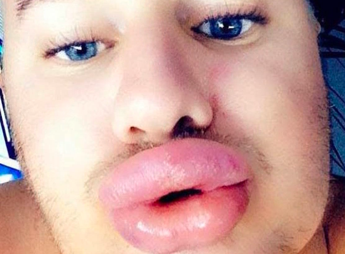 这其中主要的就是给嘴唇整形,为了拥有了一个丰满的嘟嘟唇,他做了16个唇部填充手术,上下唇各自注射了1ml的填充物,手术过后,他的嘴唇乍看上去就像挂了两根肥厚的香肠。尽管如此,他仍然还想继续整形。