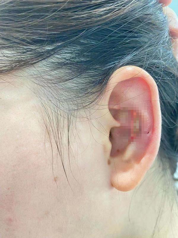 蒋某取耳软骨之后的左耳 受访者供图
