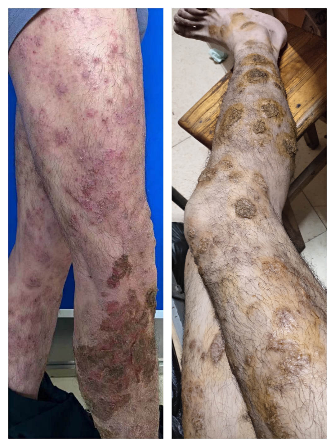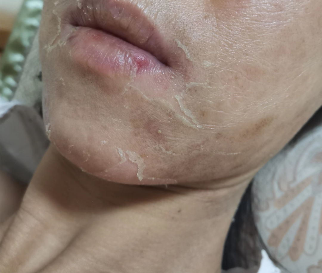 此后,我的病情愈演愈烈,头皮、腿弯、臂弯、腹股沟、阴部、腋下、全脸和脖子等部位,出现了红痒破溃,伤口与衣物黏连,在枕头和床单上留下了一片片血痕或组织液的黄印。