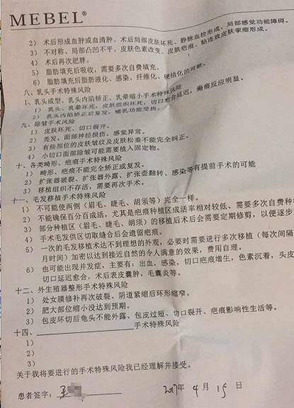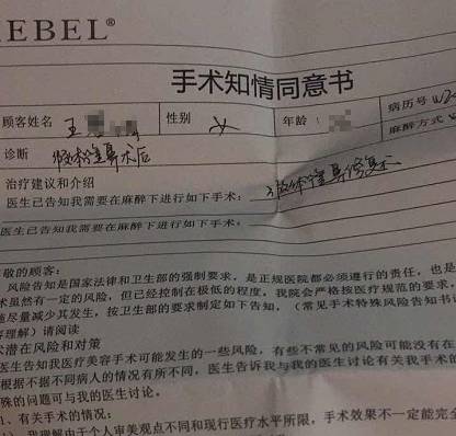 医院工作人员:手术同意书上都写清楚的。