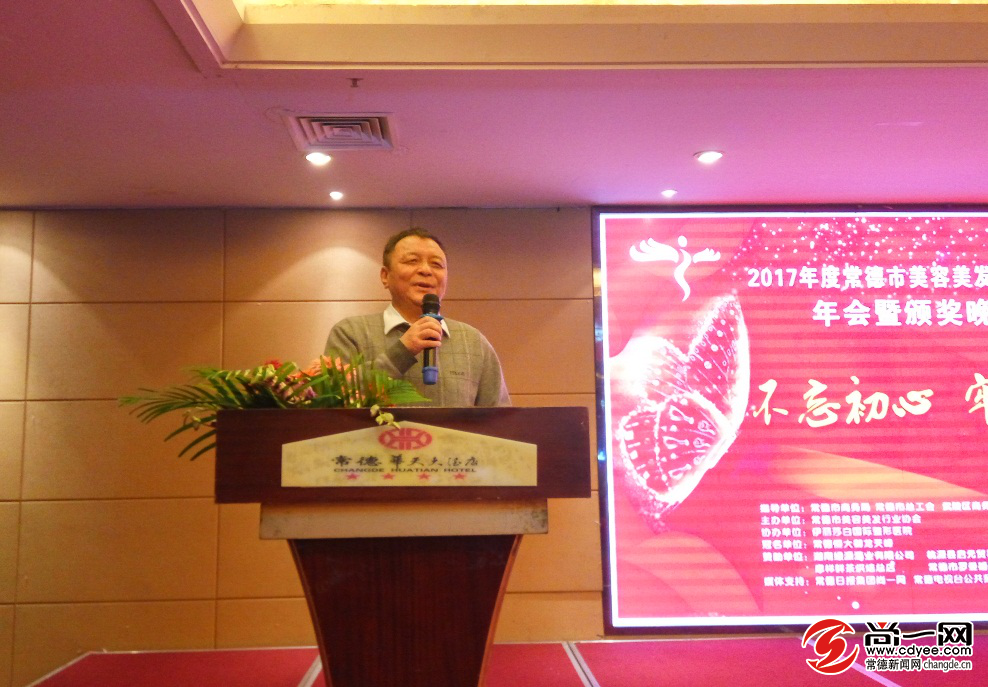 常德市美容美发行业协会秘书长刘立辉致辞。尚一网见习记者 胡军 摄