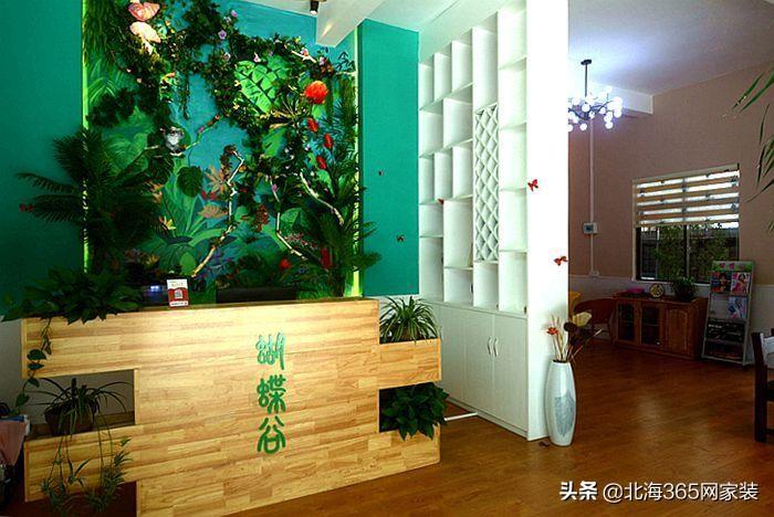 看来门口有这么大的变化,里面的变化简直不敢想象!赶快推开门看看里面到底变成什么样子了!推门进去,被这个绿葱葱的背景墙深深吸引了,慌神间以为自己到森林里啦。