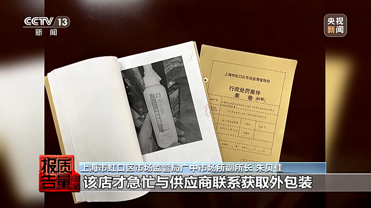 上海市虹口区市场监管局广中市场所副所长 朱贝佳:该店经营使用的化妆品都已去除外包装,产品标签上是英文或其他外文字体,无中文标签,在我局告知该店涉嫌违法时,该店才与供应商联系获取外包装,都为国产的普通化妆品。
