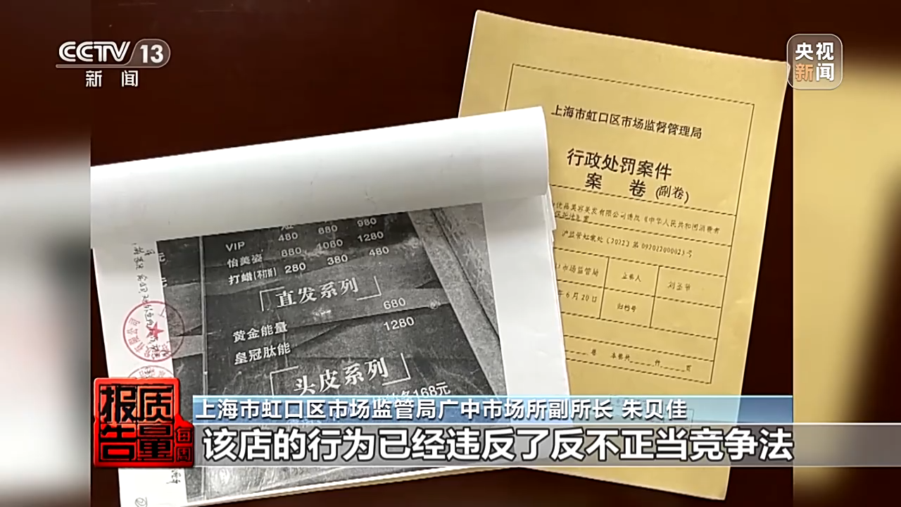 上海市虹口区市场监管局广中市场所副所长 朱贝佳:使用的普通化妆品,并非具有批准宣称功能的特殊化妆品。该店的行为已违反了《反不正当竞争法》第八条第一款的规定。我局依据《反不正当竞争法》第二十条第一款的规定,对该店作出了行政处罚30万元。