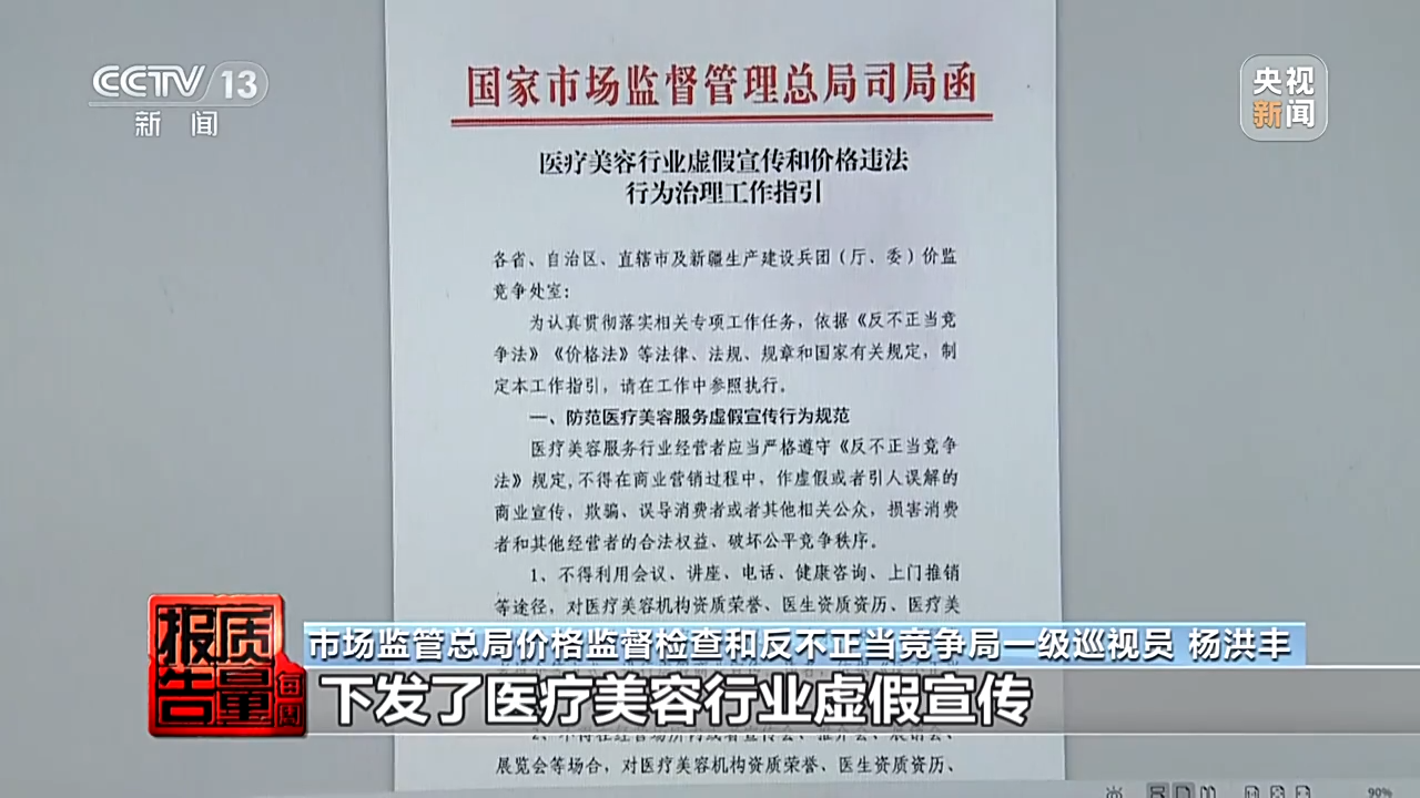 记者了解到,浙江市场监管部门查处的这起医美案件并非个例。从去年开始,市场监管总局就部署开展打击医美领域不正当竞争行为,公布涉及虚假宣传医疗机构资质、医生资历、产品功疗;刷单炒信;仿冒混淆;不正当有奖销售等多起医美行业不正当竞争典型案例。通过查办典型案例分析发现,医美领域不正当竞争行为主要体现在虚构资质、鼓吹疗、利用网络进行虚假宣传等多个方面。