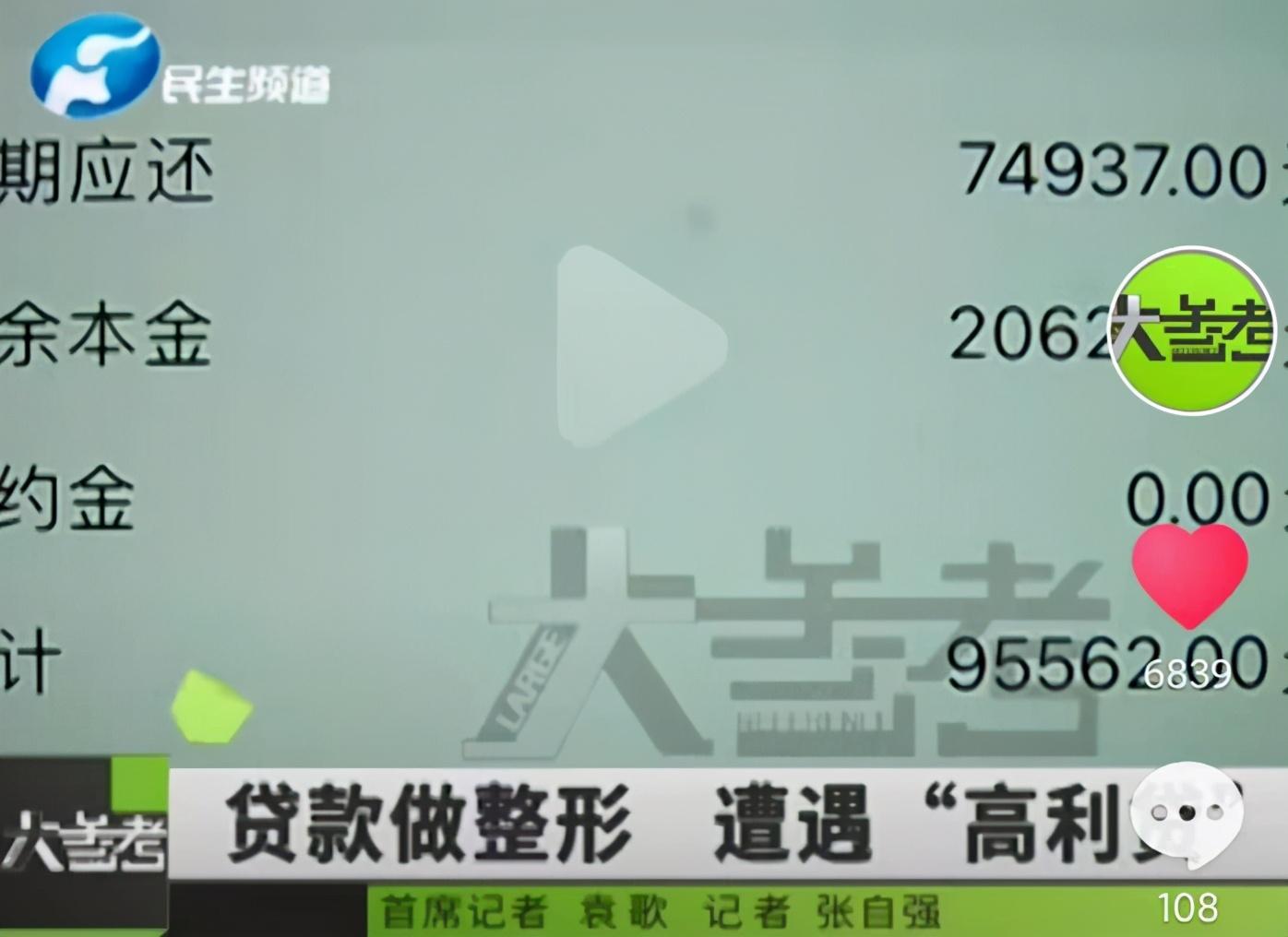 近日,河南民生频道《大参考》报道,2019年10月27日,姚女士在郑州和沐医疗整形美容医院打、玻尿酸,在“妲己”4.5万元(美容费用),已经还了一万五千多了,还剩两万三四。记者发现,仅仅半年多时间,姚女士应还的20625元,现在已经飙升到95562元。