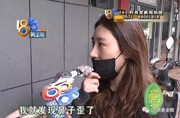 孙女士:“没拆线之前,第六天嘛,因为他们给我夹的鼻夹,鼻子太油了,因为好几天不洗脸,鼻夹脱落了,我就发现鼻子歪了。”