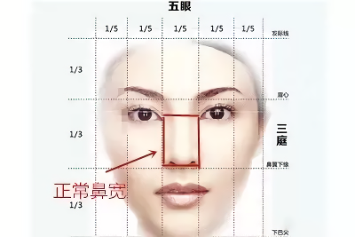 首先来科普一个点,鼻翼的宽度。大家都知道三庭五眼,那么鼻子的佳宽度是多少呢?科学的宽度也就是图中的红框的部分,也就是鼻宽是等于两眼间距。鼻翼很宽的人,需行鼻翼缩小术就能使整个鼻子变小而窄。但即使是名字都叫做鼻翼缩小,如果仔细了解就会发现,术式其实也各有不同。