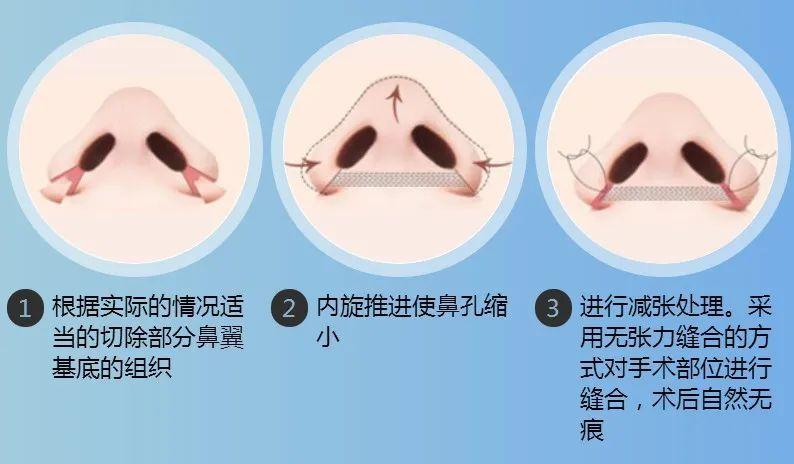 只是轻度的鼻翼宽大,那么可以通过插入鼻小柱辅助柱或采用鼻尖自体软骨移植术。其原理就是通过抬高鼻尖的方法收紧过大的鼻翼,让鼻翼在一定程度内缩小。
