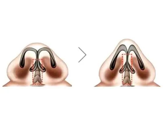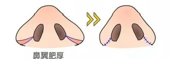 要是求美者是由于鼻翼较厚或鼻翼沟上方过于丰满,那么可以通过切除鼻翼软骨上面部分脂肪和结缔组织,必要时切除部分鼻尖软骨,使鼻部组织显得纤细,小巧玲珑。
