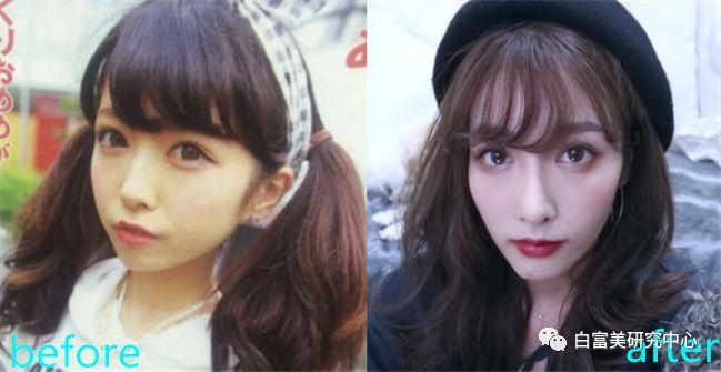 再来看yuri酱微调跟大整之后的对比图,从一个可爱挂略有小缺陷的女生,变成了五官都挑不出毛病的成熟女神。