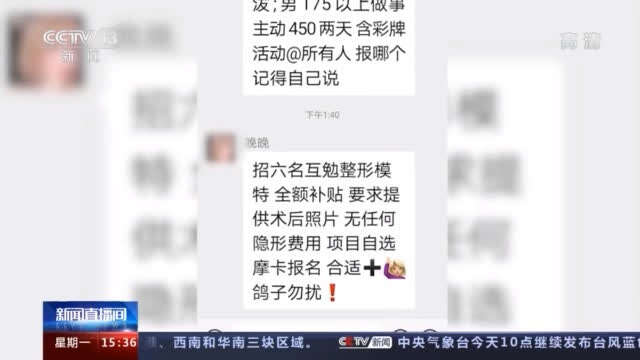 被害人 小刘:有一个人他会在那种礼仪模特群里发这种招募免费打版模特的信息,然后说有需要的话就加他。就是招募打版,免费整容打版模特,价格是全免的,而且报销往返路费。