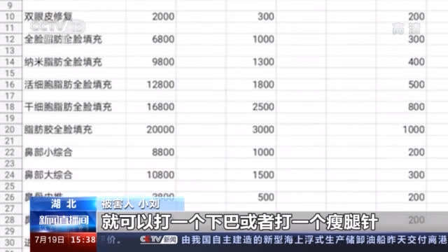 被害人 小刘:我在别的地方可能花钱,就是正常花钱只需要两到三千就可以打一个下巴或打一个,加起来一共也不会超过四千块钱,但在这个医院收到了一万三千八。我当时会觉得有点奇怪,但是我想它既然是打版,它收那么多钱,可能也有资金周转的一个功能。还要我,我觉得特别不靠谱,我就没有,然后我就一次性把钱全部付了,他说按每个月返还给我,然后我们签合同,所以你不用担心说不返钱什么的。