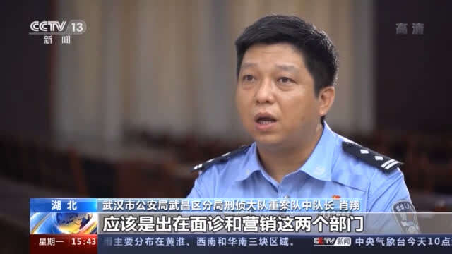 武汉市公安局武昌区分局刑侦大队重案队中队长 肖翔:有医疗部,护理部、后勤、行政部门,然后还有面诊部、皮肤科,然后它的营销部,其实我们后发现真正出问题的应该是出在面诊和营销这两个部分,而且这两个部分一个是负责引流,把客户引入到医院来,面诊就是配合引流一块儿给客户洗脑。