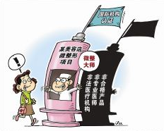 报刊、电台、电视台、网络……甚至是街头传单,目前各种整形美容机构硬的、软的广告可谓无孔不入,天天都有。不少广告经卫生部门和工商部门审批后又被悄悄动了手脚,违规夸大的花样不断翻新,或以活细胞隆胸、无疤痕手术等违反医学规律、故弄玄虚的虚假广告词来误导消费者;或弄几个无从考证的所谓“博导”、“教授”穿白大褂的图像以示,总能把人“忽悠”来就行。
