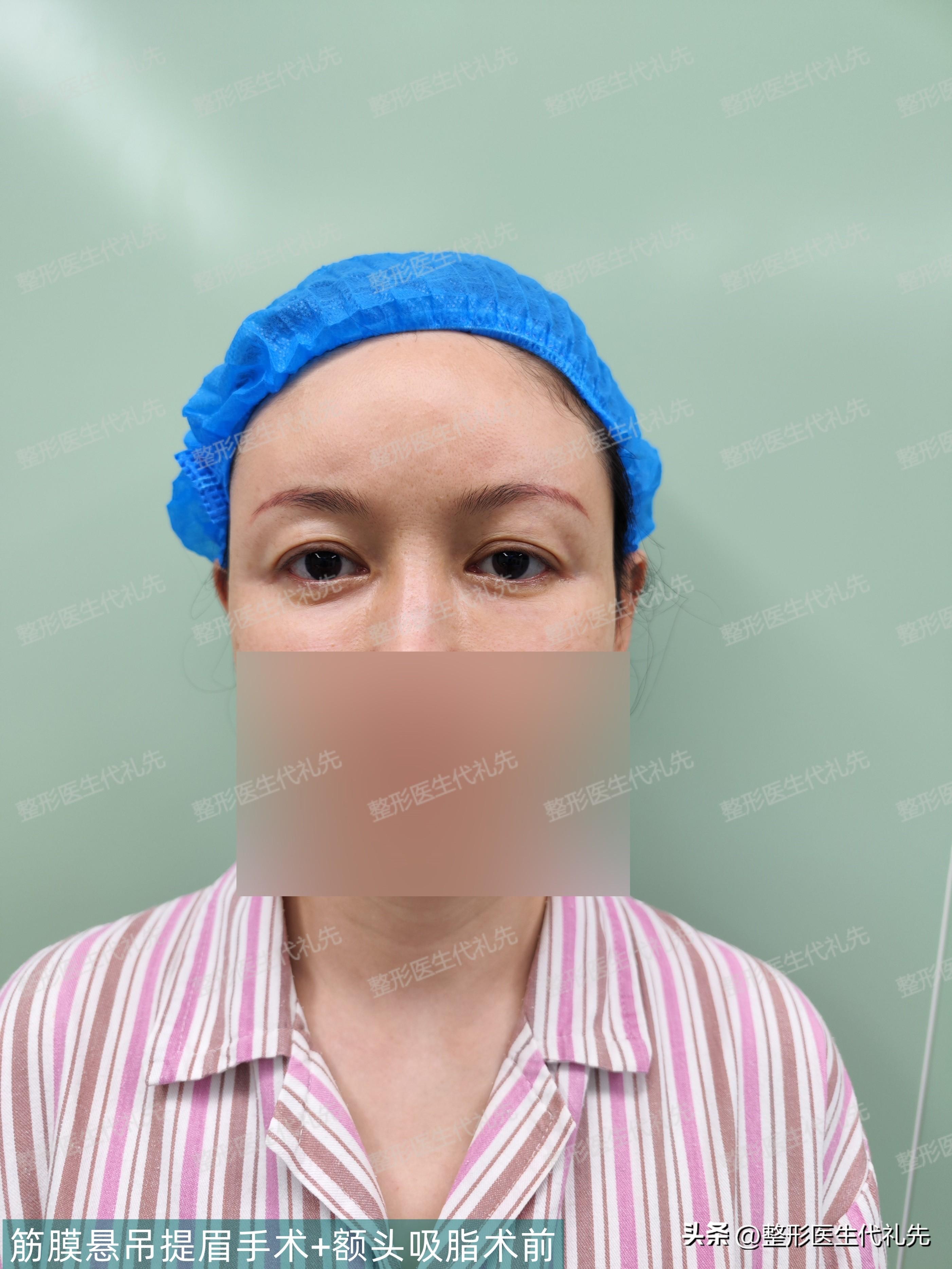 术前面诊详细沟通:带着上面的三个想法来北京与代主任详细的做了沟通,终设计:额头脂肪加减+筋膜悬吊提眉手术。