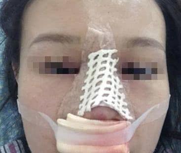 术后第3天,还缠着纱布呢!很怕疼,所以手术用的是全麻,手术中倒是没有什么感觉,醒来就发现鼻子已经被缠上的纱布了,看不到鼻子的形态,只是隐约感觉到鼻子确实挺起来了,期待自己后期要美美的!