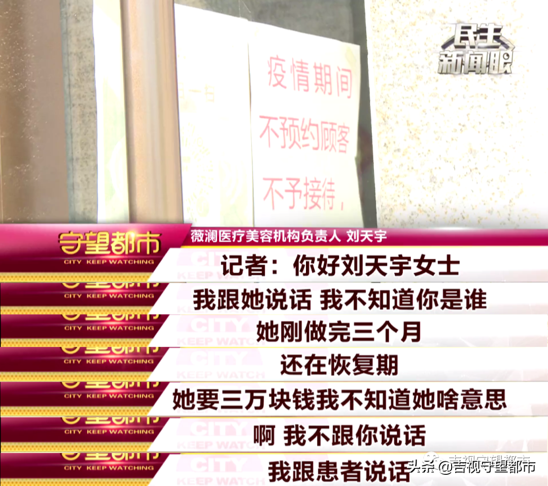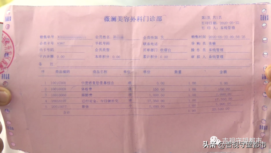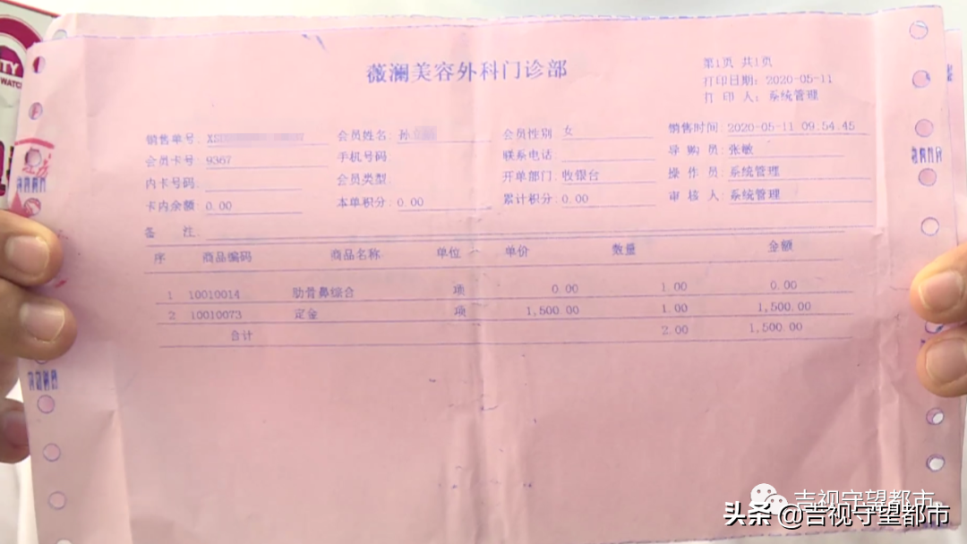 我做手术相关的费用一共大概花了三万多,但是现在我们协商的,(张敏)她要退给我两万五,我认为她这个事说的不合理,我当时做手术是为了美,因为我本身是做主播的,现在也没法直播视频了,已经造成我没法正常工作了,我认为她要赔我三万块钱,我可以接受。