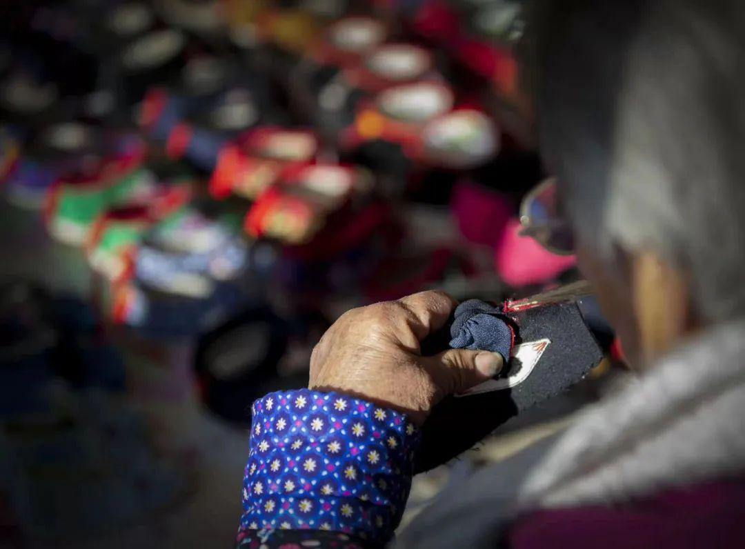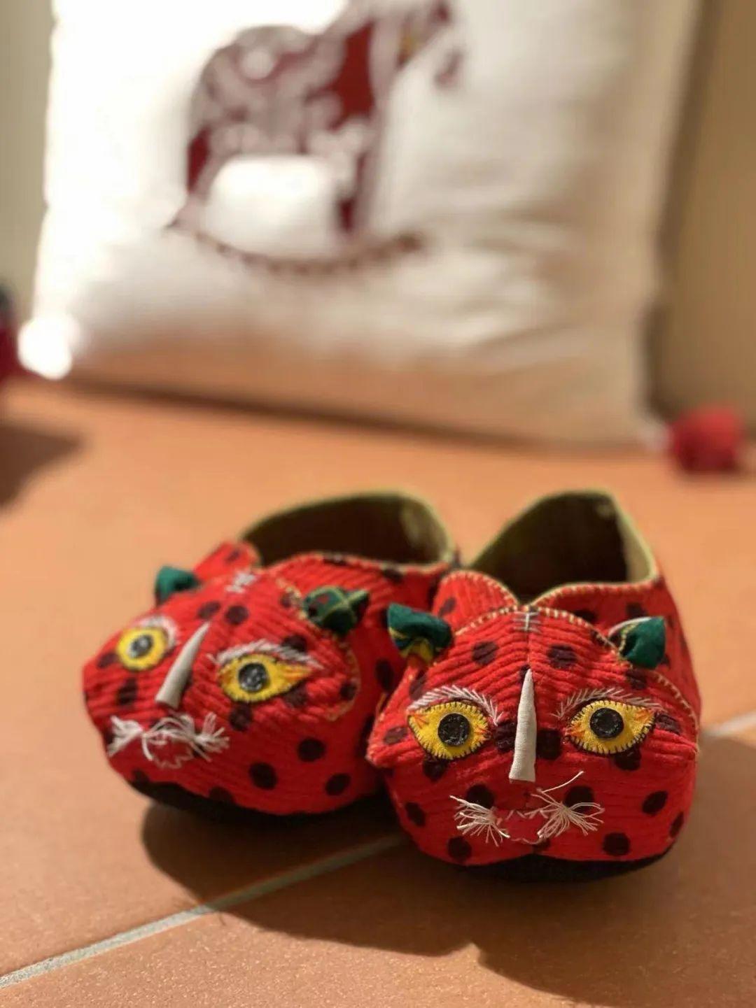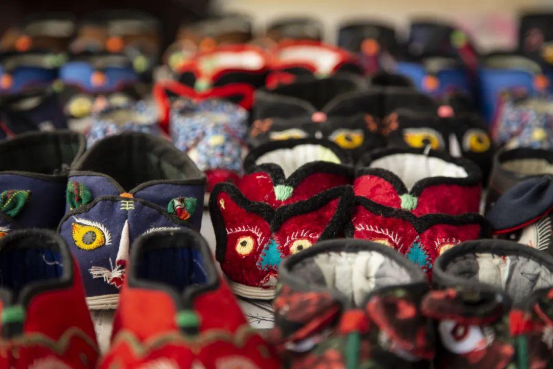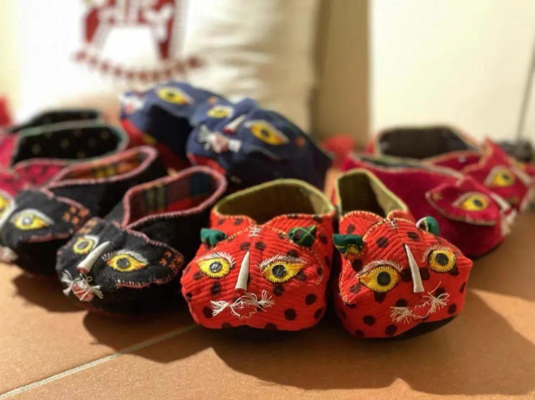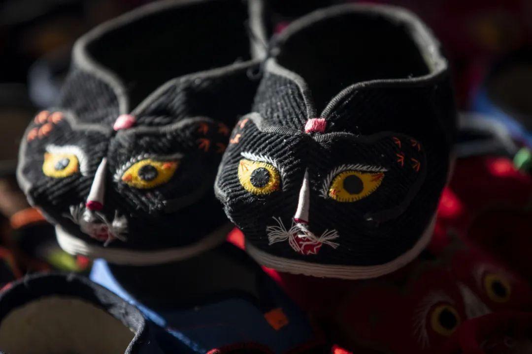 各种各样的颜色,每一款式,都是美的艺术精品。看着一双双手工缝制的猫鞋、虎鞋,不仅寄托着老人对孩子的爱意,也蕴含着一种浓浓的乡愁……
