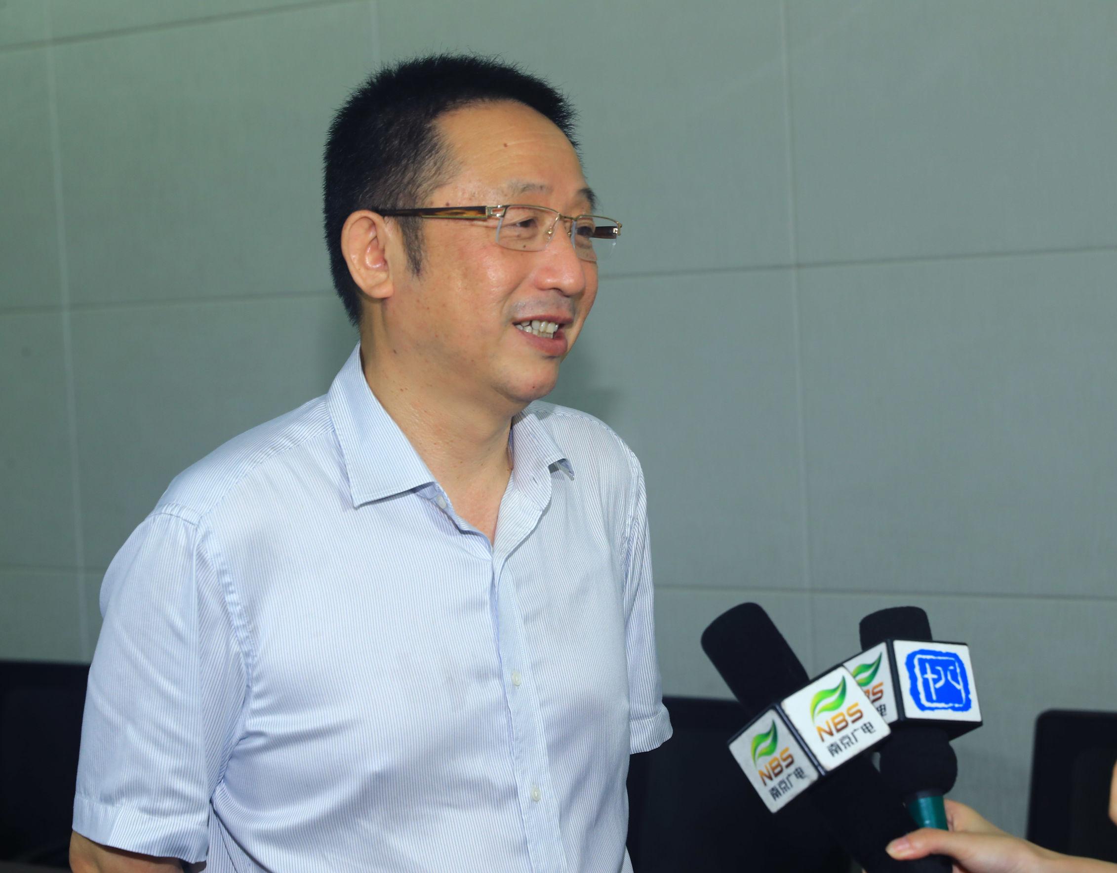 江苏省瑞华基金秘书长张颂杰接受媒体采访。