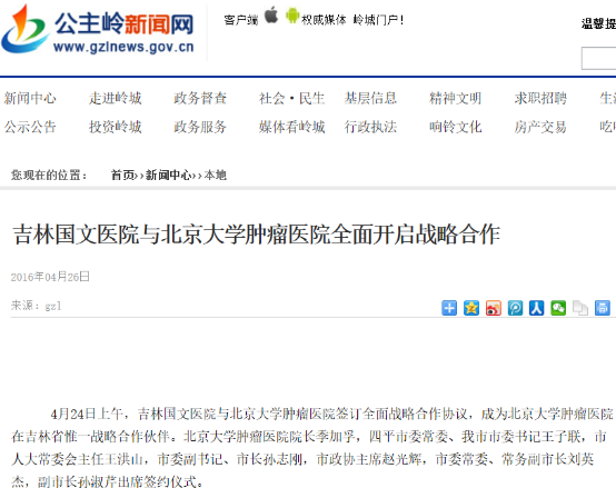如果民营医院资金雄厚,好的办法还是院间合作,直接把北京或上级医院的名头拿来用果更好。下面配一张图片,这是吉林省公主岭市国文医院的名头,既有吉林大学又有北京大学,既得到了政府的支持,又得到了专家的帮助,技术水平提升,百姓认可,至于益根本不用愁!