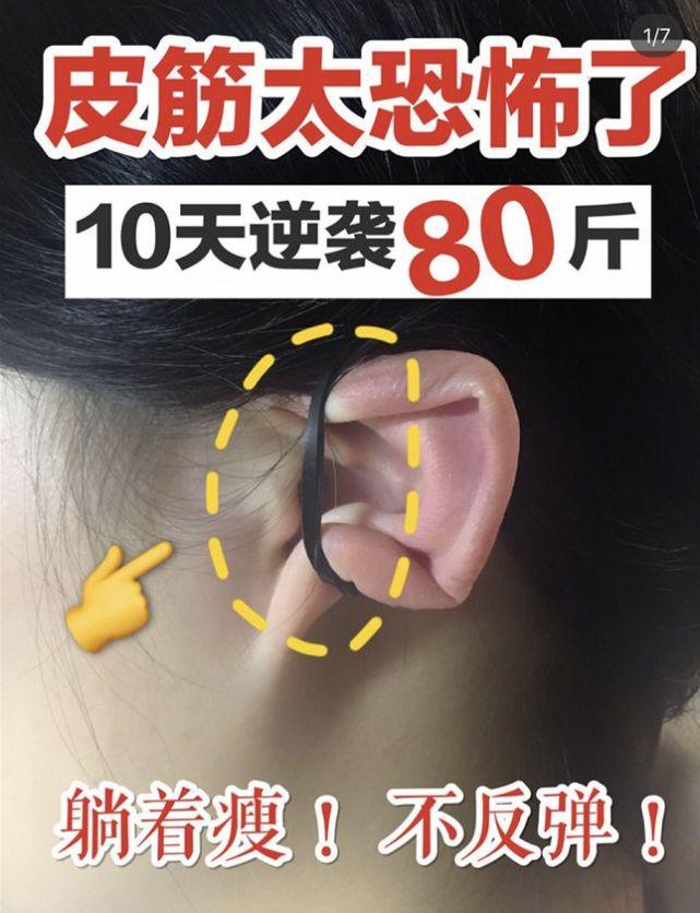 人体确实有不少穴位,刺激不同的穴位也会有不同的果,但这需要正确的手法和找到的位置,不是得说随便绑根五毛钱皮筋就能做到的。绑耳朵可能会有短暂的“瘦脸”果,但那是因为耳周围的皮肤被提拉后,在视觉上呈现出的错觉,并不是真的瘦了。皮筋纤细,绑起来很容易造成血液流通不畅,尤其是绑耳朵,真的好痛啊!(别问我怎么知道的)