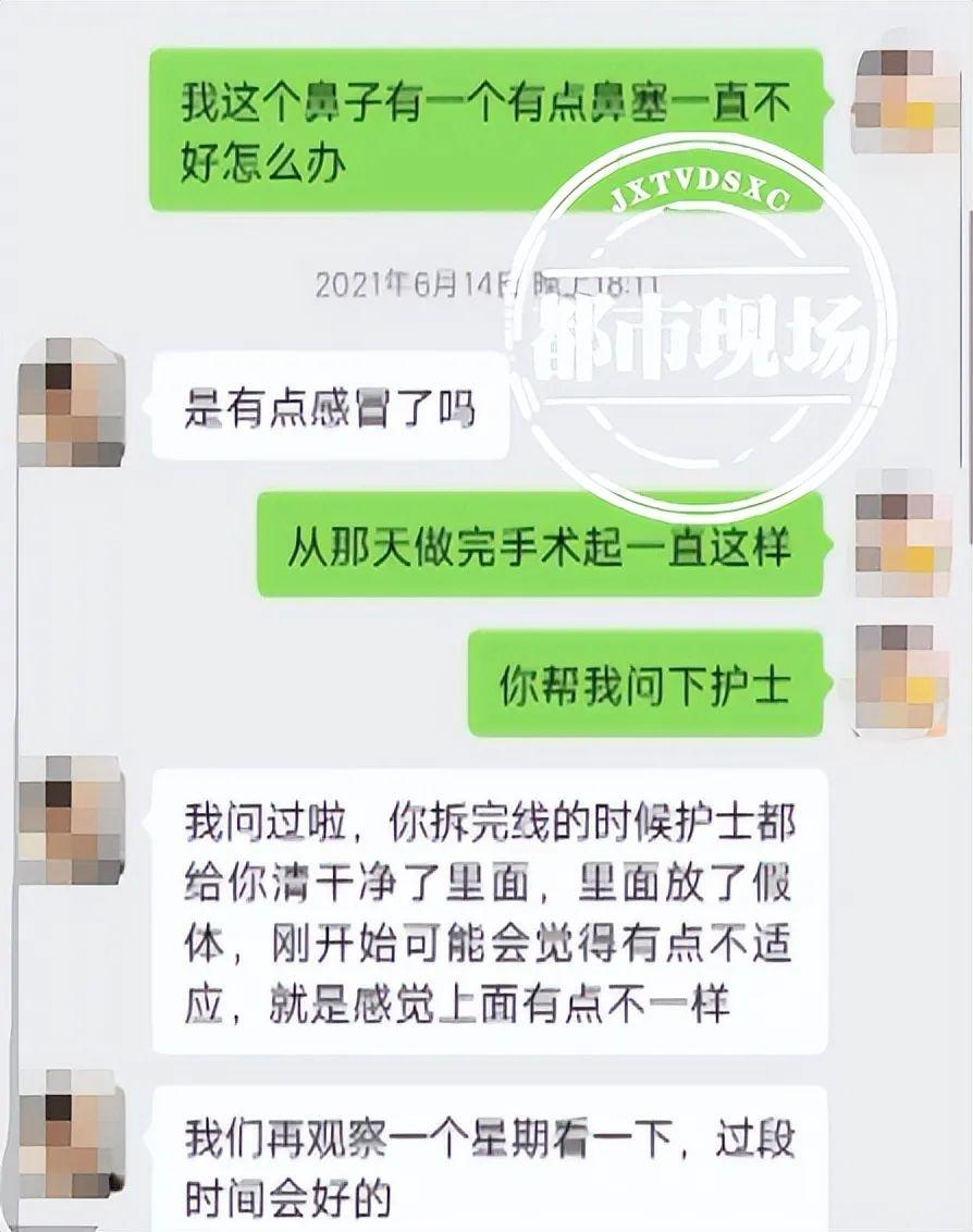 消费者 曹女士:做完之后,有一个鼻孔一直会流鼻水,他跟我说不要紧,过一个礼拜拆线的时候来看一下会不会好一点。