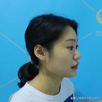 2、侧面观:鼻面角30°,鼻额角150°鼻尖突出度22mm,上唇小柱角95°