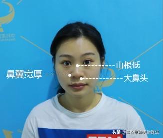 1、患者鼻梁侧面看起来矮,正面鼻子短,鼻头大,鼻翼肥厚,整个面部缺少立体感。