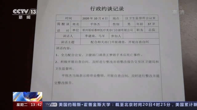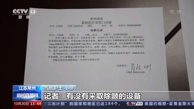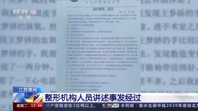 常州新北区卫生健康局卫生健康三处处长 薛锋:目前,我们调查下来,主要是两方面情况,第一个,该美容受术者,她一天同时做3台手术,手术时间略显偏长。第二个,在术中发生意外后,医务人员应急处置能力还是不足。