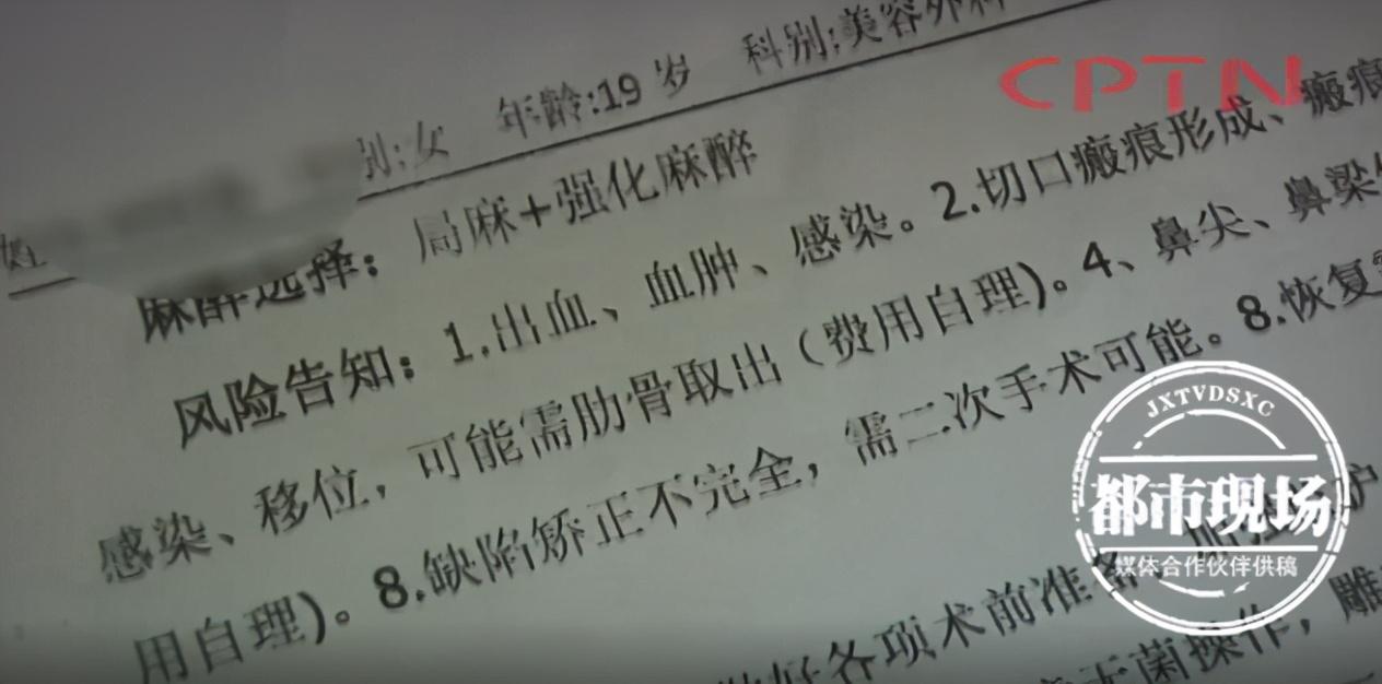 就这样,小丽就瞒着家人,稀里糊涂用贷来的钱,在这家整形医院做了肋骨鼻、眉弓填充、额头填充。