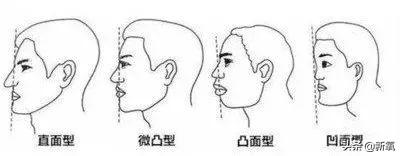 也由此衍生出审美常用知识点:侧面型三类,分别是凹面型、直面型、凸面型。侧面的立体度与纵深度、鼻基底饱满与否、上下颌的关系基本上都能凭借侧面型这一概念简单概括。对日常判断也更加便捷,即作一条垂直于鼻根点的直线就足以界定。