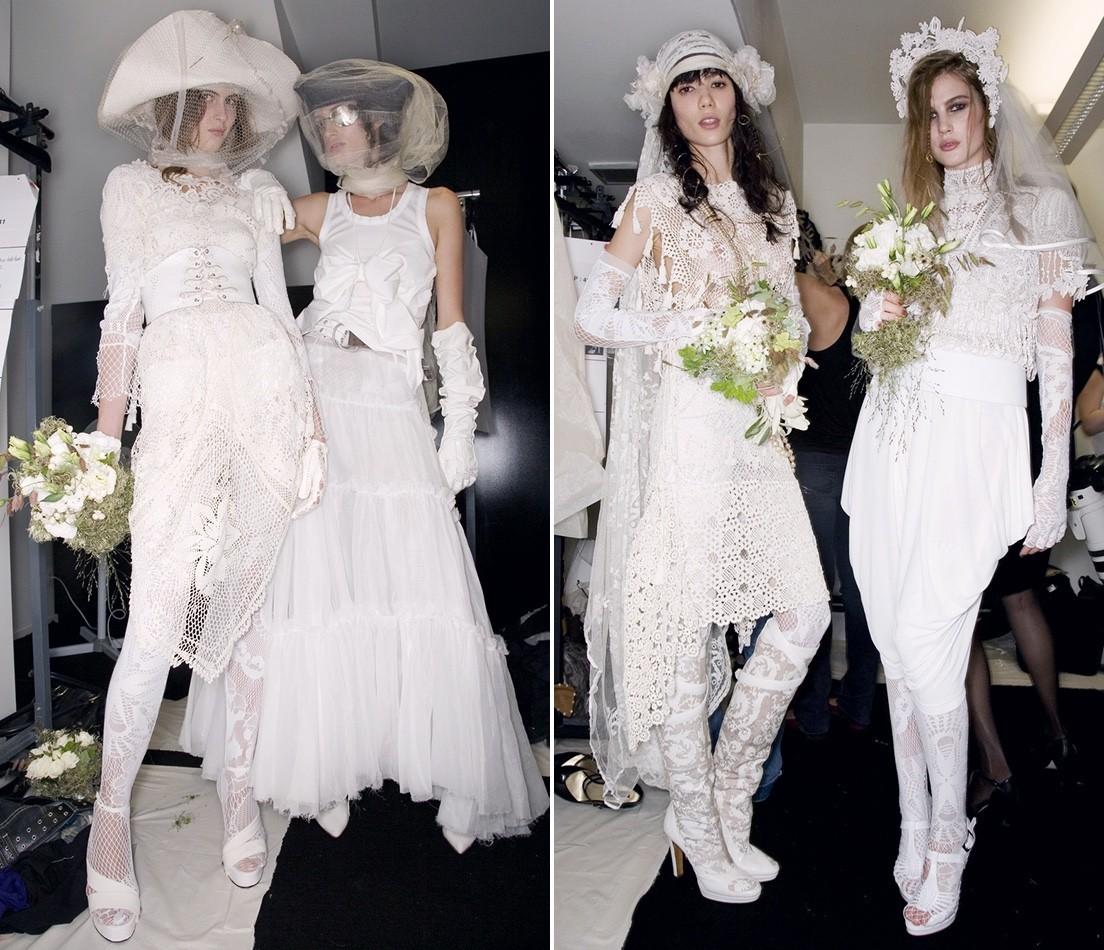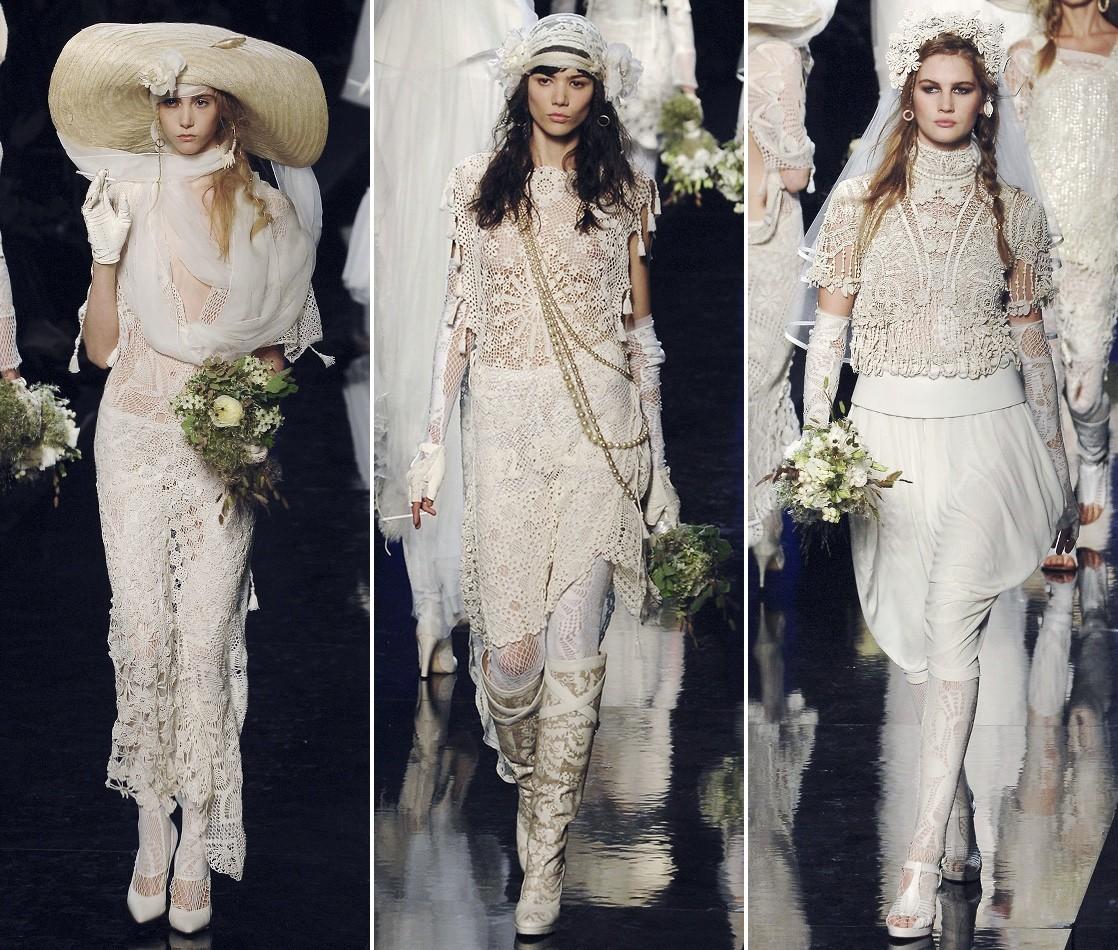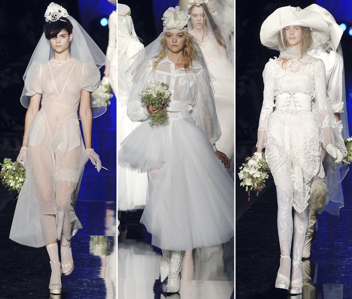 妙的系列出现在压轴登场的“新娘”环节,众所周知Jean Paul Gaultier的压轴谢幕总会伴随各式各样的新娘披着婚纱登场~这一季是“海盗”年,自然轮到了“海盗新娘”唱主角~