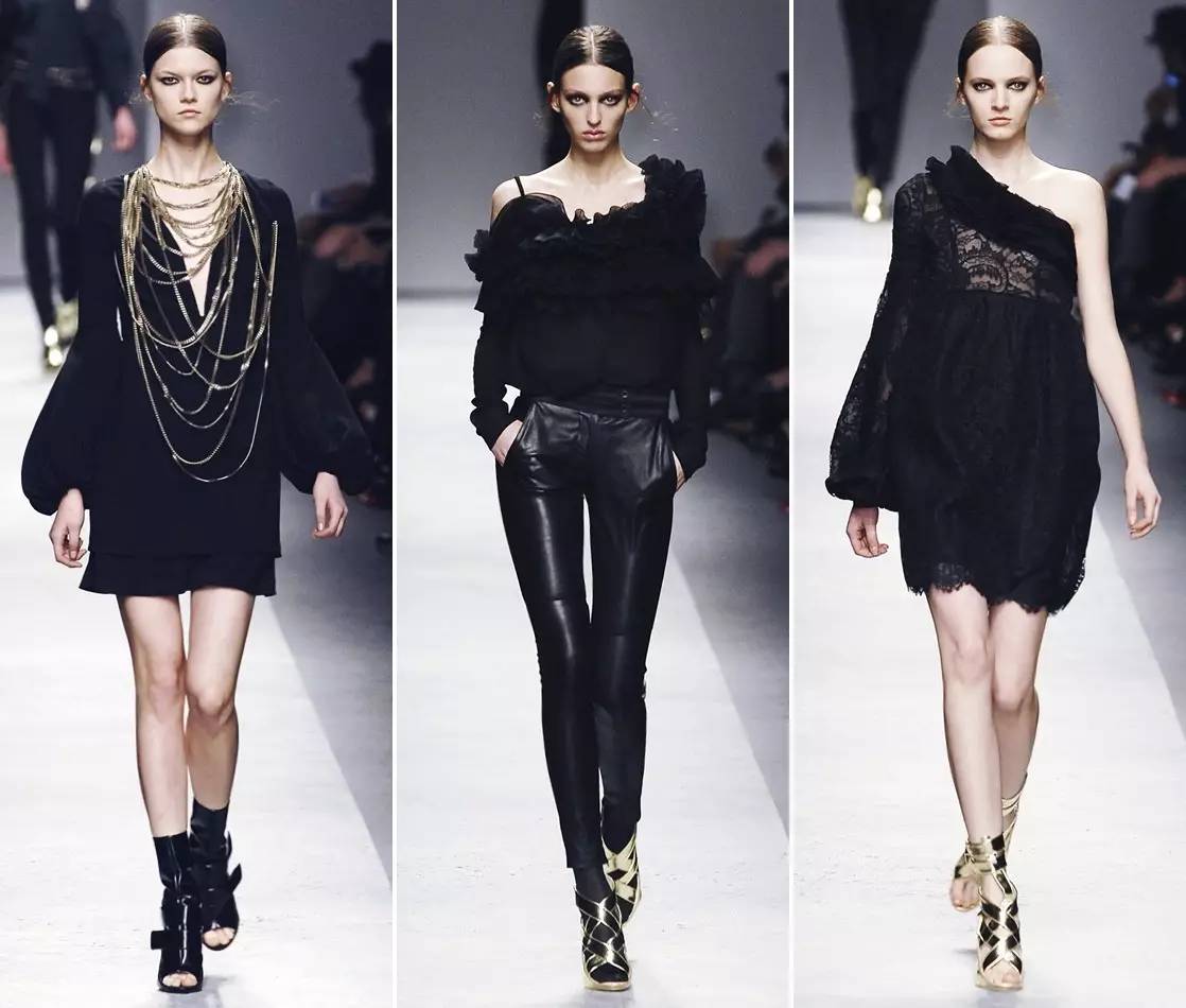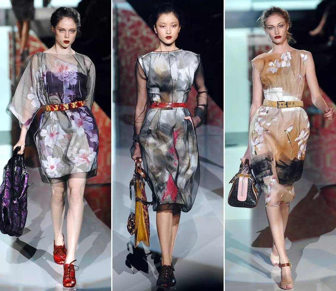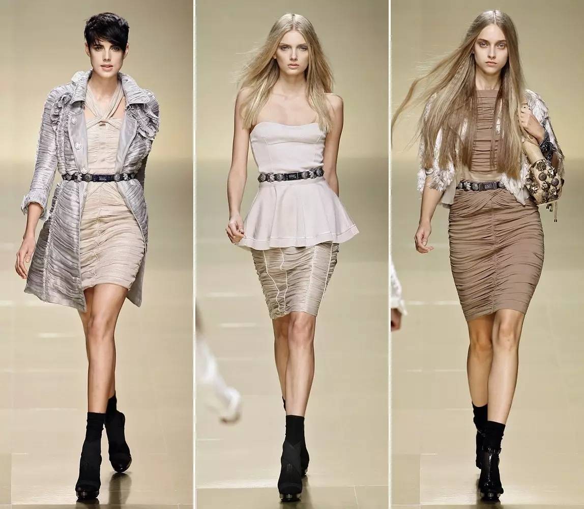 那季的Burberry清一色的全是褶皱和雪纺,缀满军装徽章的皮衣皮带引领着当年那股“重金属复兴”风潮~虽说是金属摇滚,却被设计师通过薄纱雪纺绢纱等材质平衡柔和,各种强势各种凌厉~