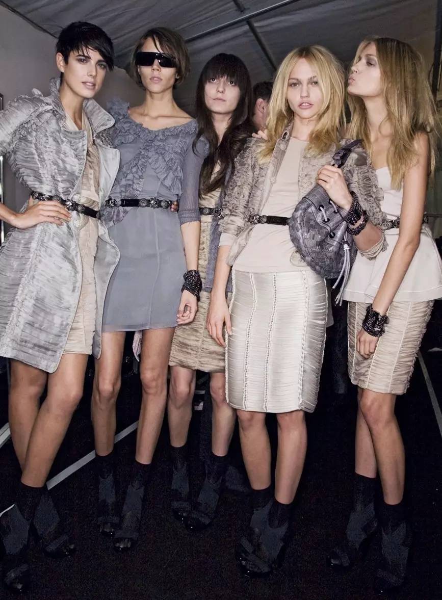 后台的经典合照:Agyness,Freja,Irina Lazareanu,Sasha P,Lily D~