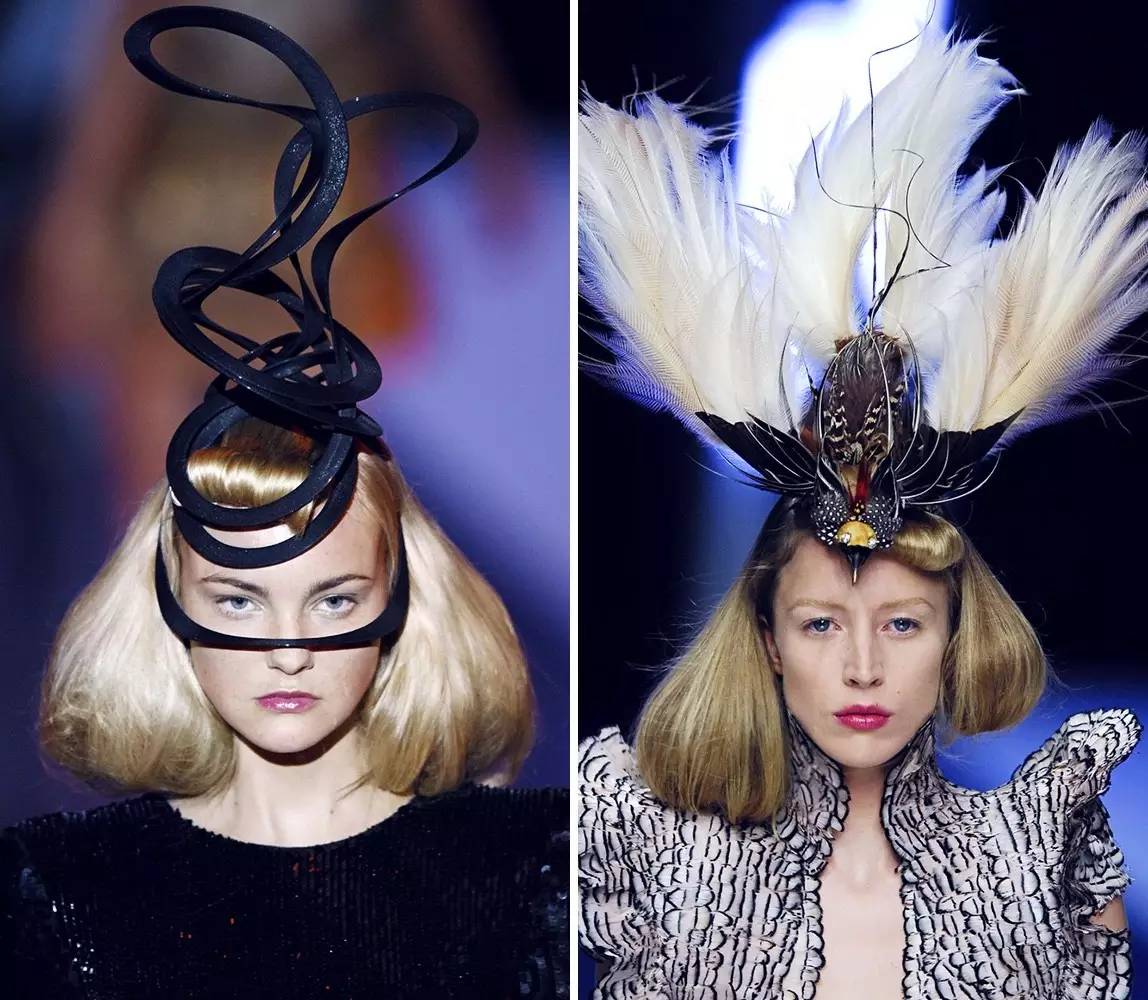 正是Isabella Blow一手挖掘了鬼才McQueen,使他从一个默默无名的学生成为了一代大师。但凡亮相于镜头前时,她总是戴着各种天马行空的Philip Treacy帽子搭配各类时装~于是乎,春夏系列里的帽饰也就自然而然成为其大看点~